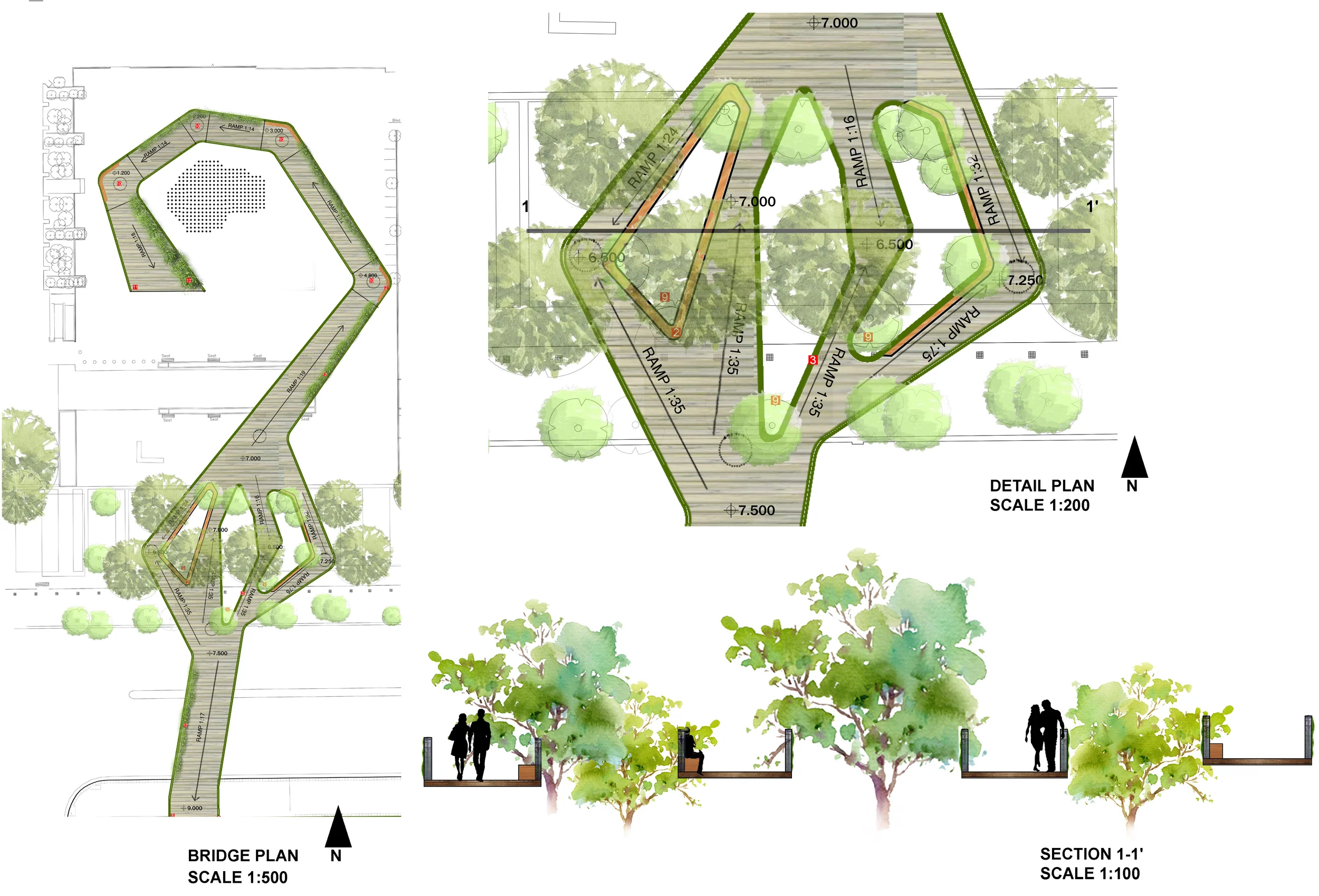 The NXP02 students developed new proposals for the Nexus 10 Precinct introducing a new gathering facility (refurbishment of the Café on Pulteney with a green roof garden) and an urban connection like the pedestrian ramp and bridge connecting the Bonython Hall and the Law School with the Nexus Tower building.